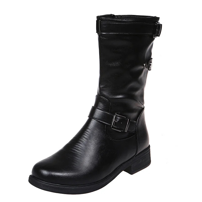Low Heel Women's Boots with Polished Color Belt Buckle