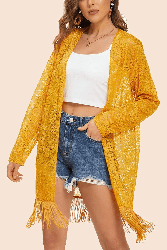 Lace Cover Up Tassel Sheer Cardigan - Zeagoo (Us Only)